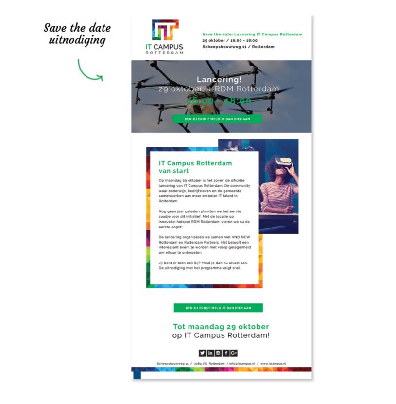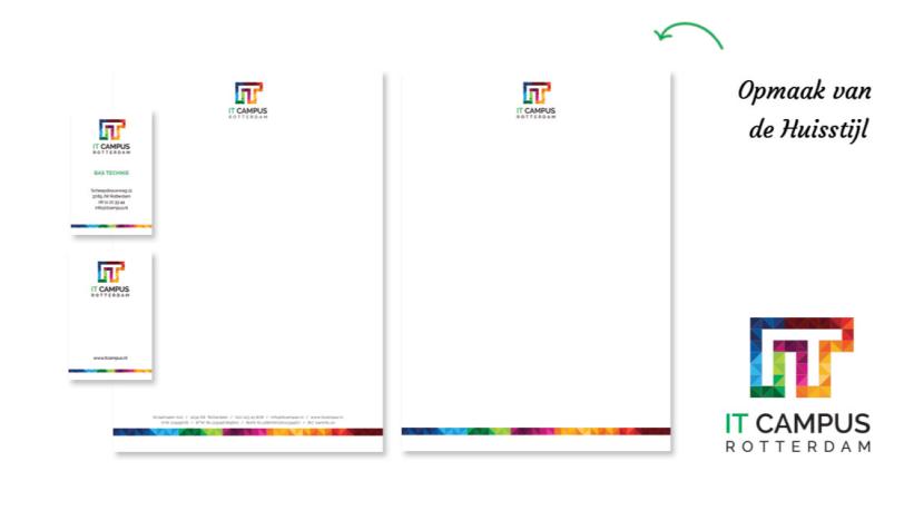 The IT Campus logo is ideal for implementation in all kinds of expressions. This can be seen on the right in the animation that we made. The logo and all other design aspects that have been made for IT Campus are used in all marketing expressions, both online and offline. This makes IT Campus very recognisable - we will be seeing more of them in the coming years!