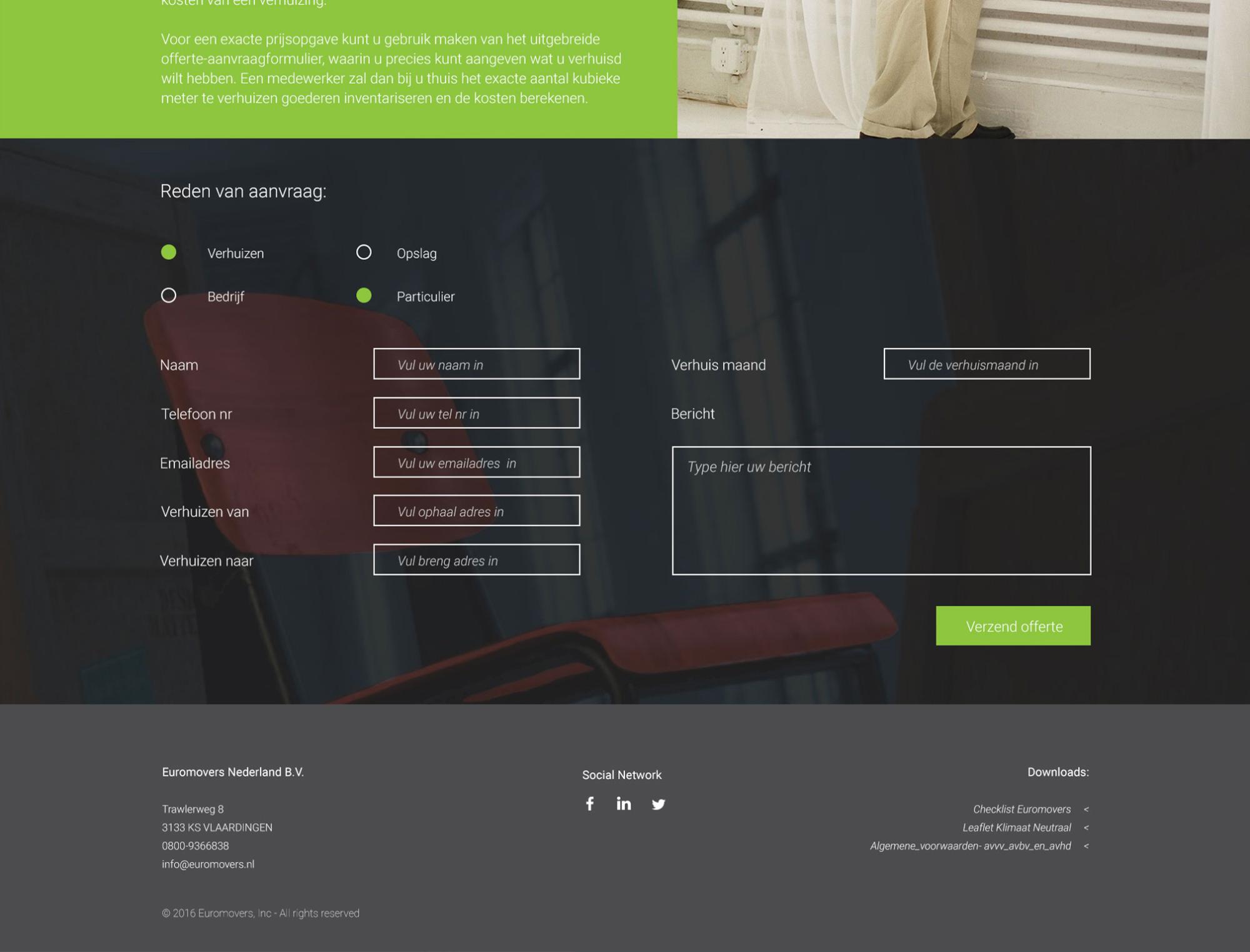 Euromovers is a network of highly qualified and reliable moving companies in Europe, USA, Russia, China, Australia and New Zealand. To create a good User Experience (UX) for them, we started by researching the needs of that target group. We kept the results as a focus while designing the ideal UX for Euromovers. After all, the flow of the website is very important for both the brand and the visitors to that website.