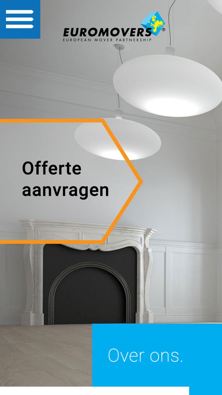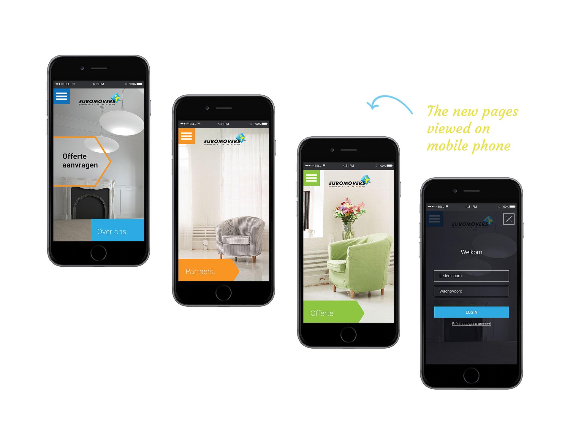 The next step had to be taken by our User Interface (UI) designer. He has visualised the interaction design. In the images above you can see what the new website will look like on a desktop. But of course there are also people who visit the website on a mobile phone or tablet. With all the possibilities and different brands of today you have many different screensizes. To ensure that the website looks nice and functions well on every device, the website has been designed and developed fully responsively. This means that the website scales to different sizes, can be used logically and is in line with the needs of the Euromovers targetting group.