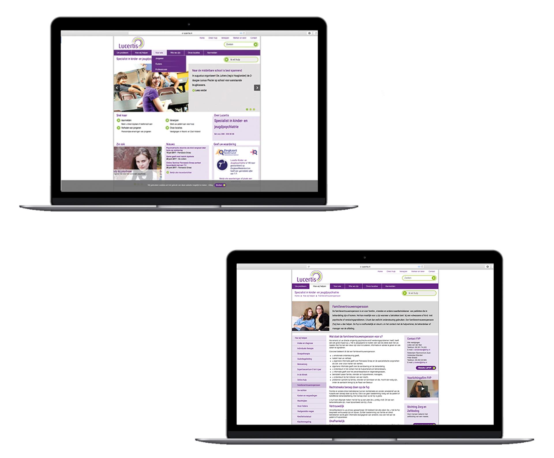 The Lucertis care institution specialises in child and adolescent psychiatry. Lucertis asked us for help with the development of the logo, website and corporate identity. The name Lucertis is composed of Luce (light) and Certis (certainty). We managed to incorporate these two elements in the Lucertis design.
