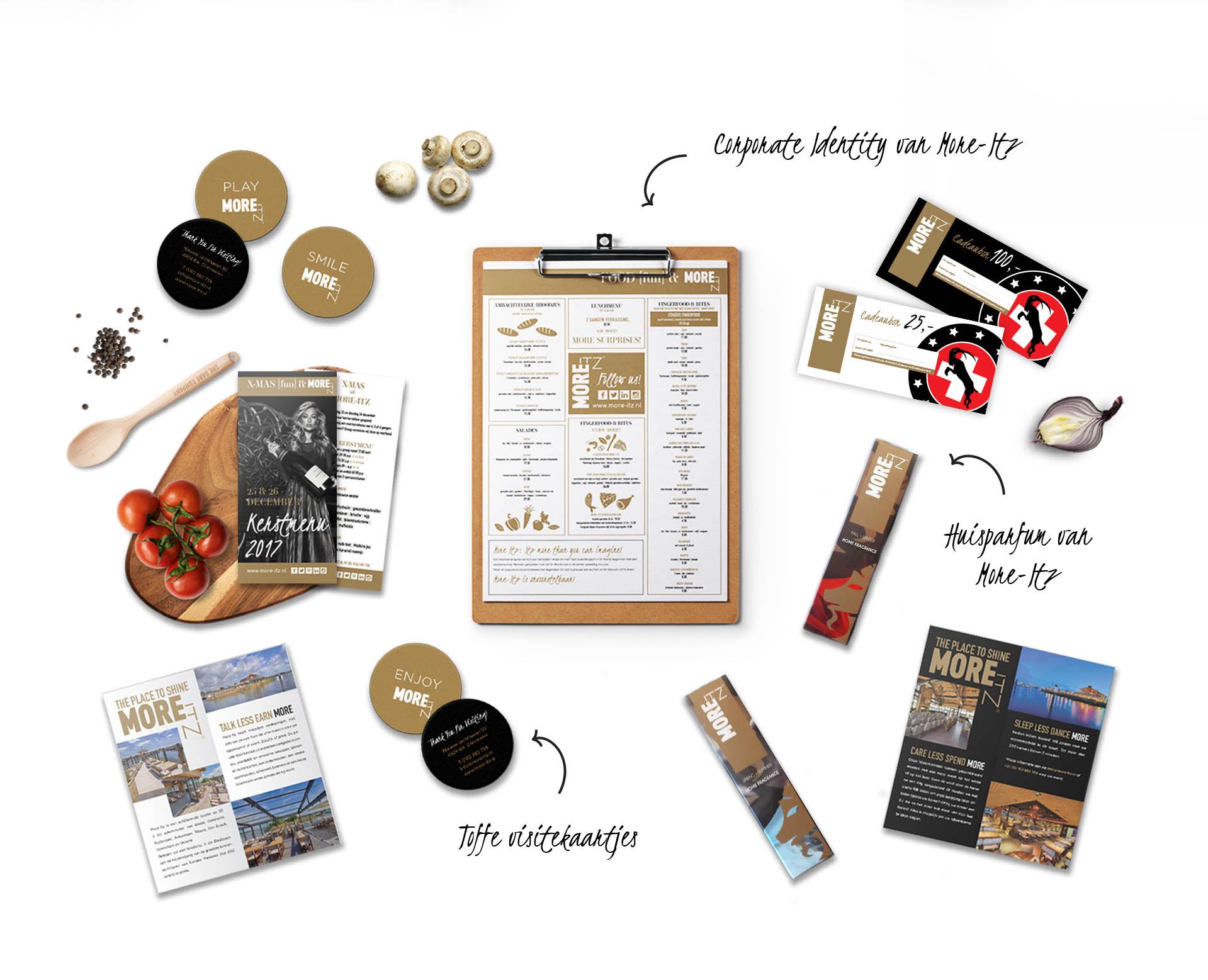 At More-Itz the sky really is the limit. Have a drink, enjoy the wonderful terrace and have a nice dinner in their restaurant. Visiting More-Itz is a big experience for every customer. The location is surrounded by nature: a valuable asset to More-Itz. You need to visit this wonderful place to know what we are talking about! More-Itz asked us to design their complete corporate identity and to deliver a strong branding. We decided to create a powerful brand and we’ve perfectioned it in every little detail. The Dare Company proudly presents the result of this successful branding project!