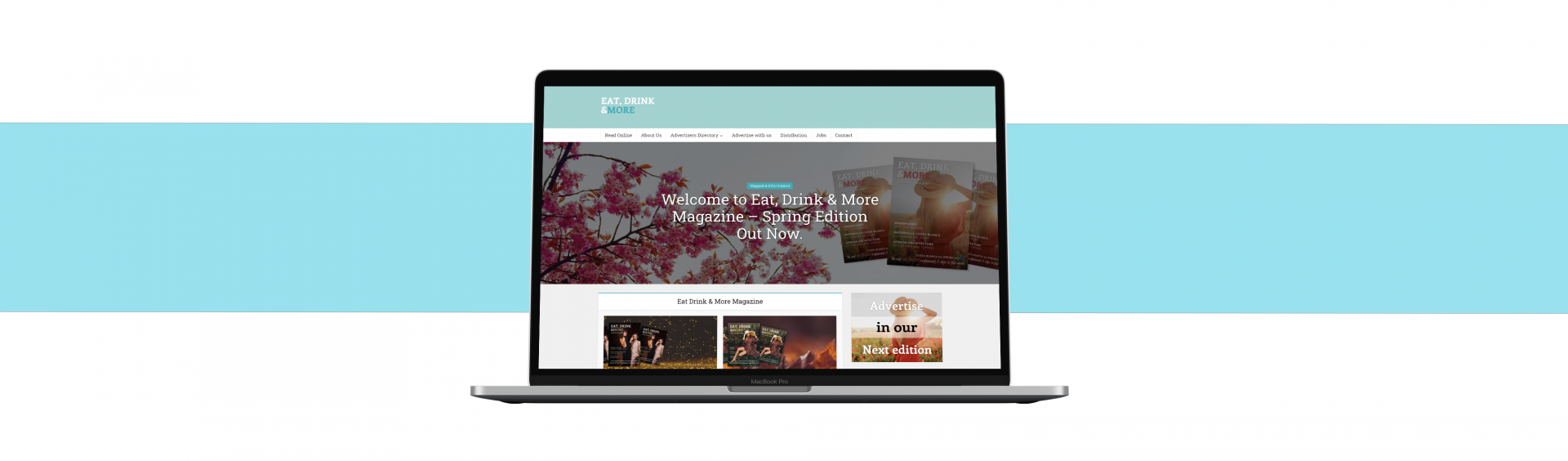 Daarnaast onderhouden wij de website van Eat, Drink & More magazine. Elk seizoen updaten wij de website aan de hand van de nieuwe editie en plaatsen wij deze op de website zodat het magazine ook online gelezen kan worden!