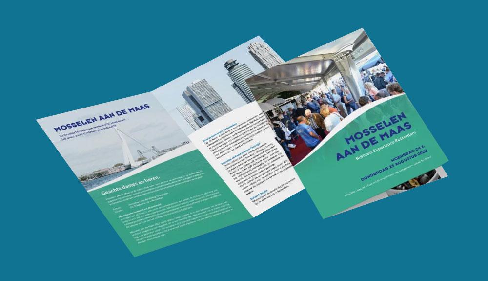 We hebben uiteraard alles ontworpen en gedrukt wat er nodig is om een evenement als Mosselen aan de Maas succesvol te laten verlopen. De brochure met het programma, een plattegrond van de beursvloer, maar ook de banner voor de e-mails, posters, advertenties, briefpapier etc. hebben onze designers voor hun rekening genomen.