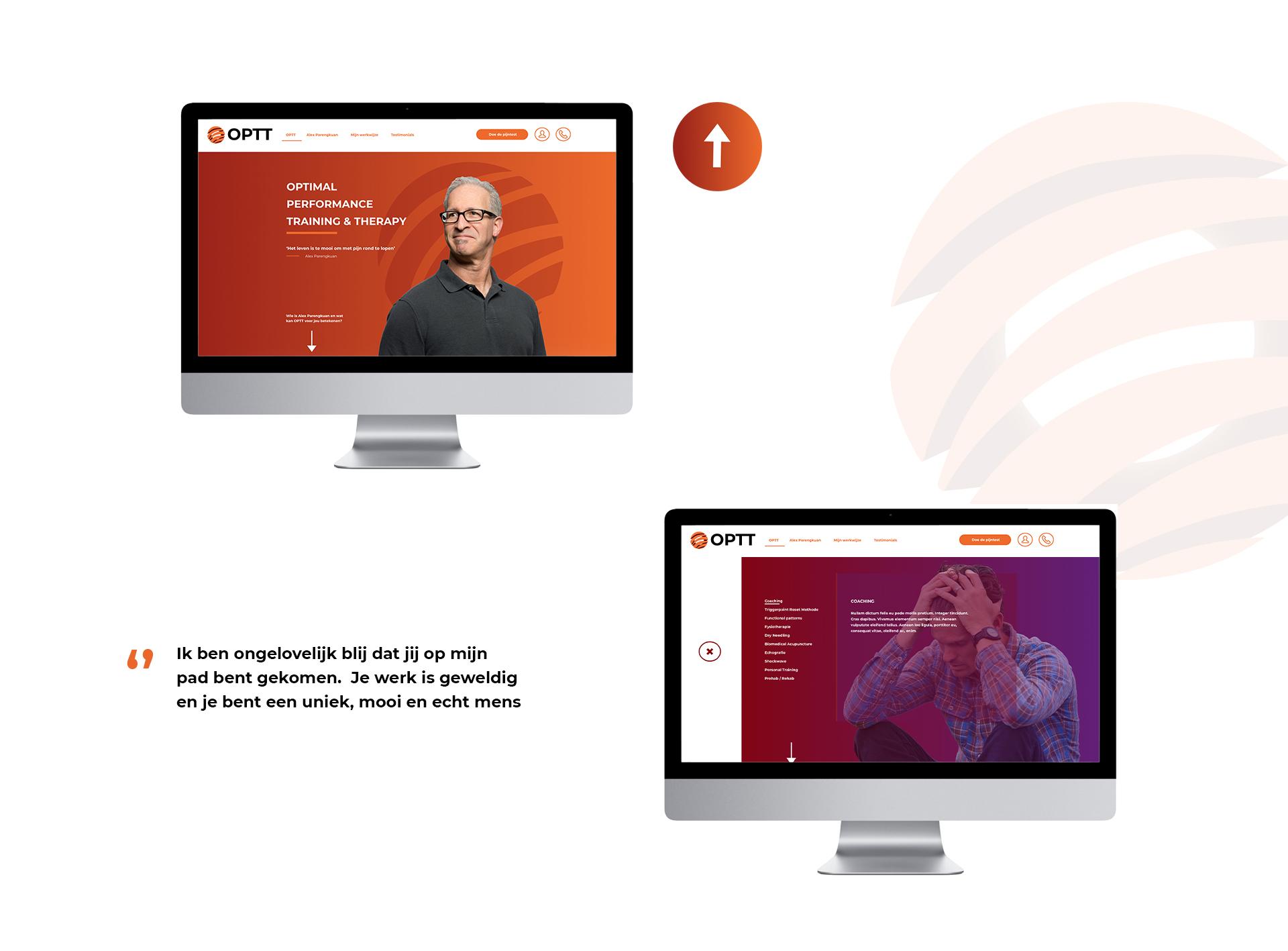 OPTT is een praktijk voor fysiotherapie en biedt speciale behandelmethodes aan om chronische pijnklachten tegen te gaan. De praktijk van OPTT is gevestigd in Rotterdam en biedt zijn klanten vooraf een online pijntest aan, waardoor klanten er eenvoudig achter komen wat OPTT voor ze kan betekenen. Wij kregen de taak om deze klantvriendelijke en vernieuwende look-and-feel te verwerken in een geheel nieuwe huisstijl, logo en website. Wij gingen deze uitdaging met alle plezier aan en zijn erg blij met het uiteindelijke resultaat!