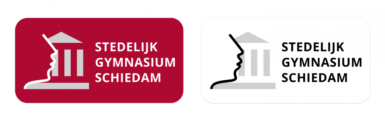 The Dare Company heeft het oude logo van het Stedelijk Gymnasium Schiedam in een nieuw jasje gestoken. Het nieuwe logo moest wel herkenbaar zijn door oude elementen zoals het gezicht, forum en de pilaren. Deze beeldelementen staan voor kennis. De kleur is in het nieuwe logo aangepast, namelijk van felrood naar een rijkere en iets donkerdere kleur rood. Ook is het font in het nieuwe logo iets moderner geworden.