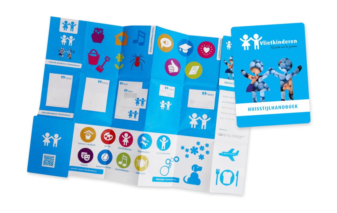 In 2005 is Vlietkinderen onstaan uit een fusie van SKL en Stikov. De nieuwe huisstijl heeft er voor gezorgd dat Vlietkinderen al snel een begrip werd in de regio Voorburg, Leidschendam en Den Haag Leidschenveen. Juist daarvoor ben je bij The Dare Company aan het juiste adres! Wij ontwerpen een corporate identity met aandacht en precisie, waardoor deze naadloos aansluit op de organisatie zelf. Voor Vlietkinderen hebben wij dit dus ook gerealiseerd, waarvan het resultaat op deze pagina te zien is. De herkenbaarheid van de blauwe kleur en de poppetjes zorgen dat Vlietkinderen een sterke speler is in de markt van de kinderopvang. Om ook de huisstijl goed toepasbaar te maken voor de medewerkers van alle 44 locaties, is er een huisstijlhandboek op zakformaat ontwikkeld.
